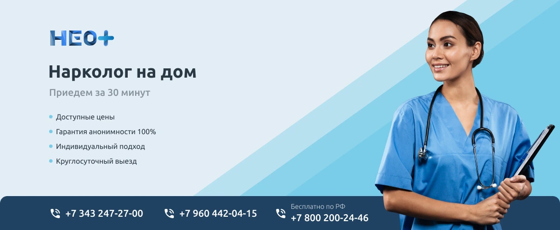 Для вызова обратитесь по телефону ☎️+7 (800) 200-24-46 наркологической клиники НеоПлюс. Мы оказываем выездные услуги по всему Ессентукиу Свердловской области. Круглосуточный режим работы.